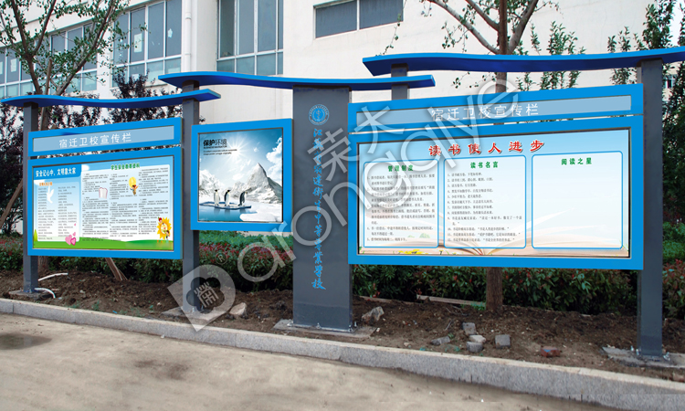 宣傳欄里可以配光源、滾動(滾軸)系統、太陽能光伏板、led顯示屏或是接收和發送裝置,不同的附加裝置,價位不同,可以根據需要選擇配置。