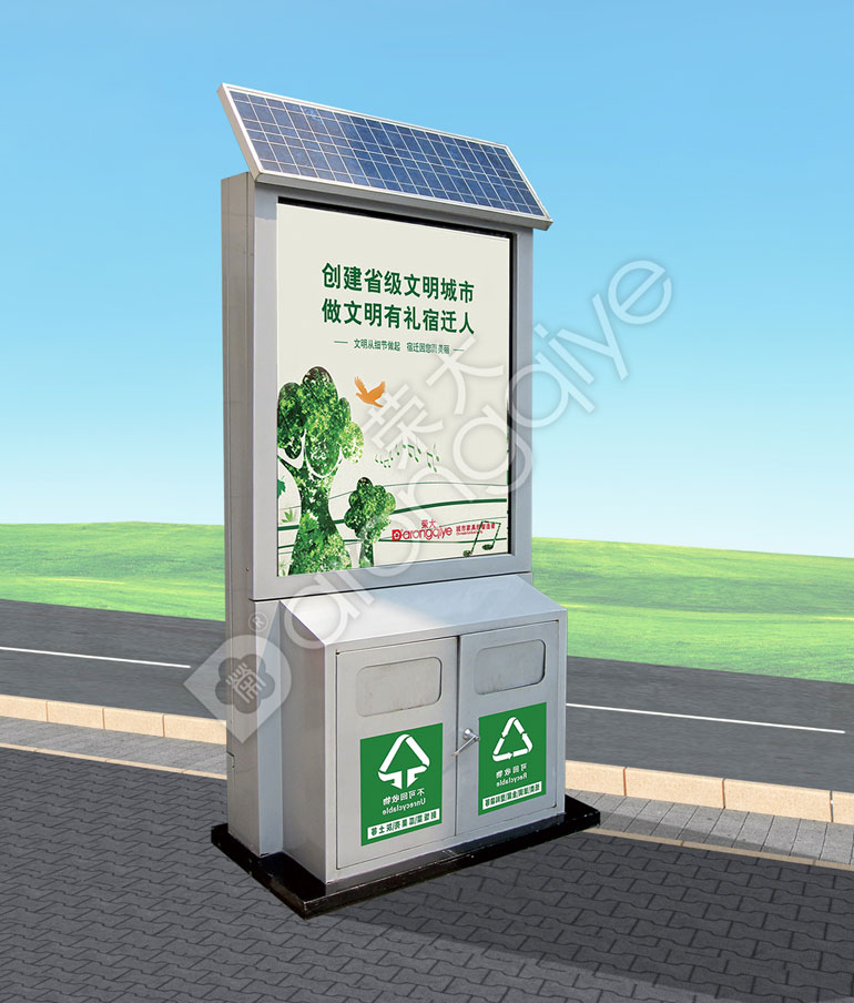 在垃圾箱頂部安裝太陽能板,通過太陽能為垃圾箱提供電源,以維護垃圾箱各個功能24小時的正常運行,環保節能,也不用擔心意外斷電的問題。